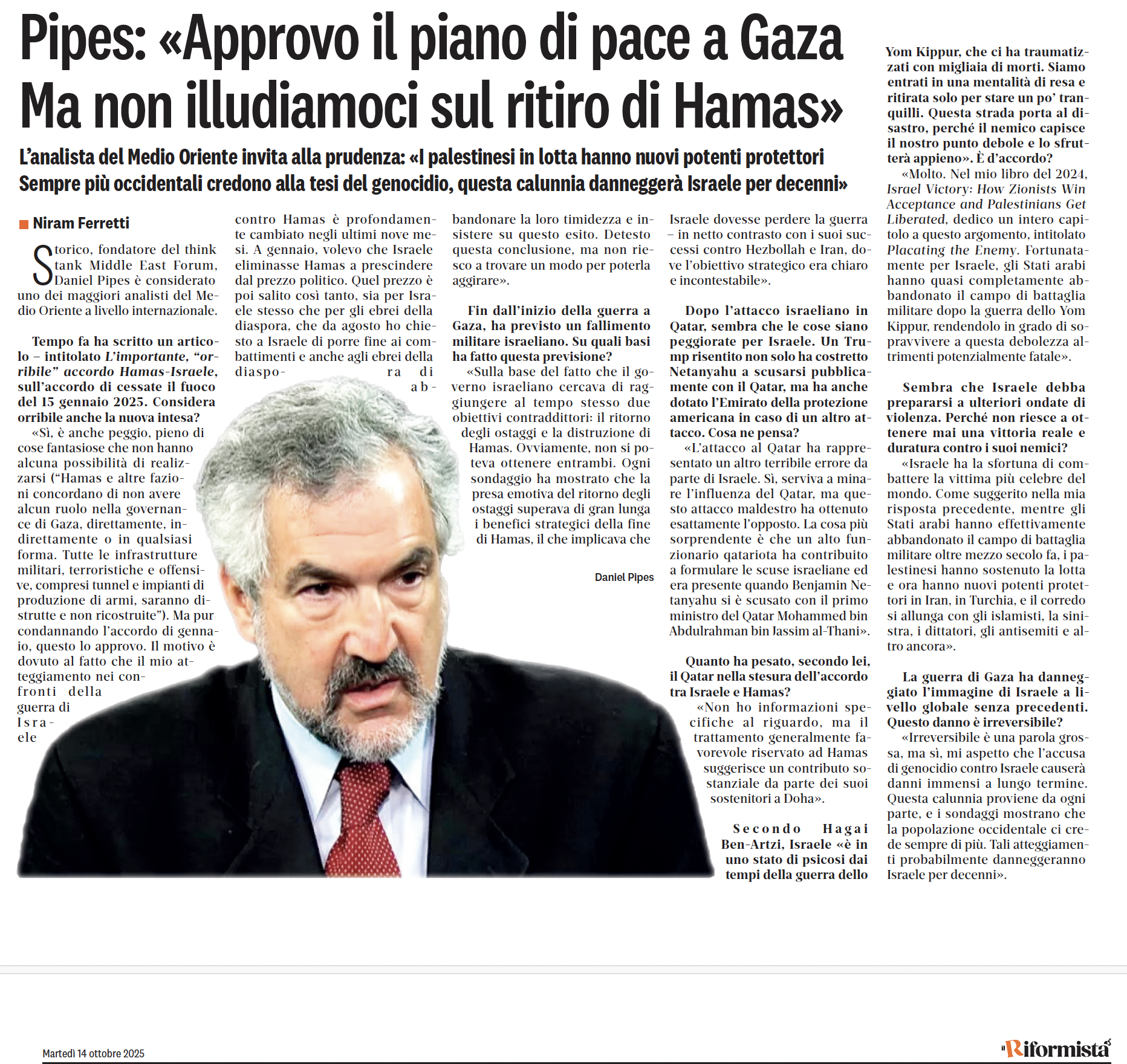 Riformista: o senhor escreveu o artigo, O Monumental, "Execrável" acordo entre o Hamas e Israel, sobre o acordo de cessar-fogo de 15 de janeiro de 2025 entre Israel e o Hamas. O novo acordo também é execrável?